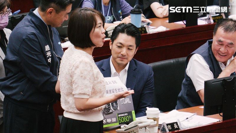 輝達計畫落腳北士科,設立海外企業總部,卻因用地問題持續卡關。北市議會今(9)日邀請台北市長蔣萬安進行施政報告並備質詢,藍綠白三黨多名議員在程序發言階段,紛紛提及輝達進駐一事,希望蔣萬安留住輝達。民進黨北市議員更送一盒,由市民委託她送出的「輝達5060ti顯卡」給蔣萬安,期盼蔣萬安能打造AI首都;民眾黨團也送出館長的「大聲漢」保健品, 希望蔣萬安能讓輝達留下,遭綠營議員諷刺「小心館長砍頭」。