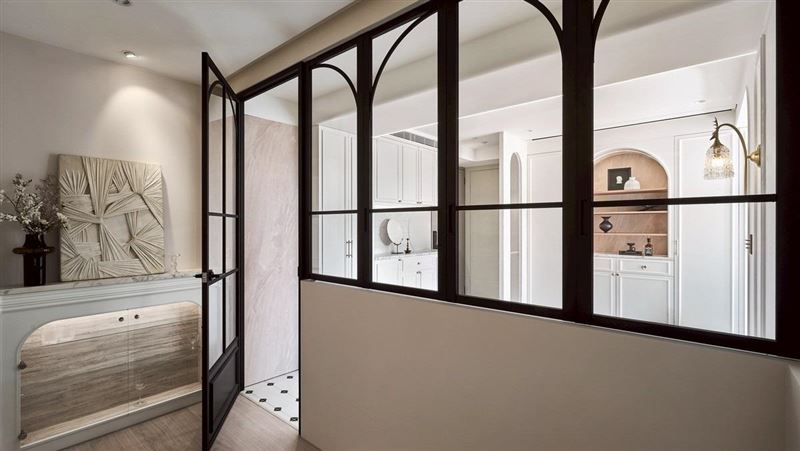 整體設計以「法式奶油」為主軸,揉合法式線板元素與現代俐落比例,打造出一個既優雅又實用的居家氛圍。在色調上,以奶油白、淺米杏為主,以木質調與黑框線條點綴,達成視覺的層次與平衡。